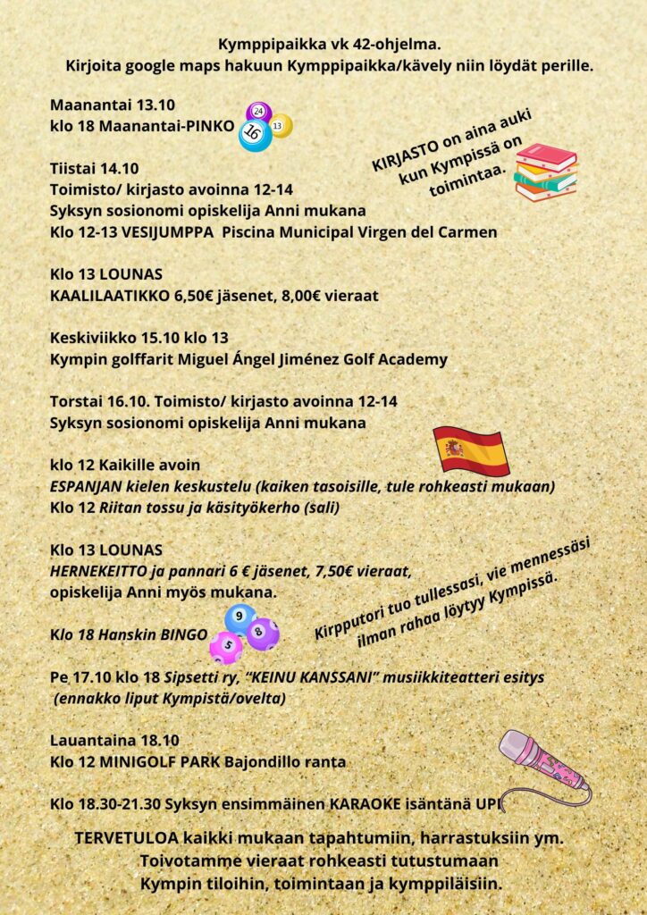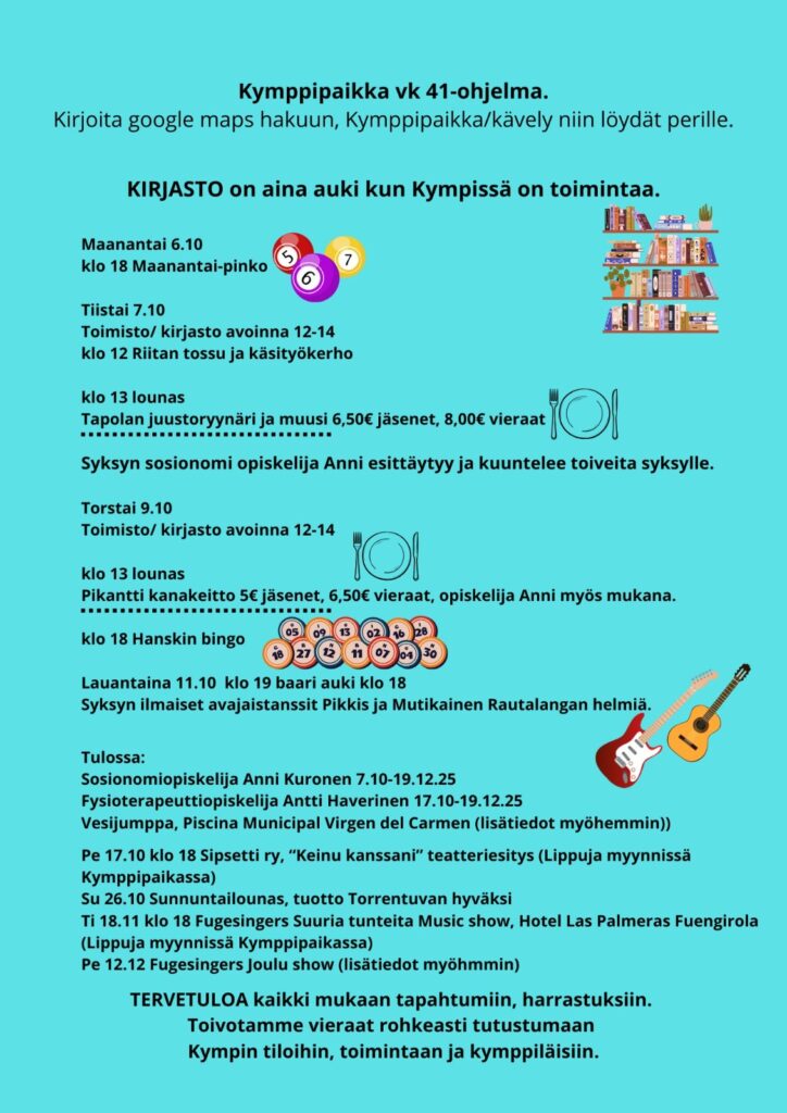 - Kymppipaikka on aurinkorannikon vanhin suomalaisyhdistys. Järjestämme erilaisia aktiviteetteja Torremolinoksessa.